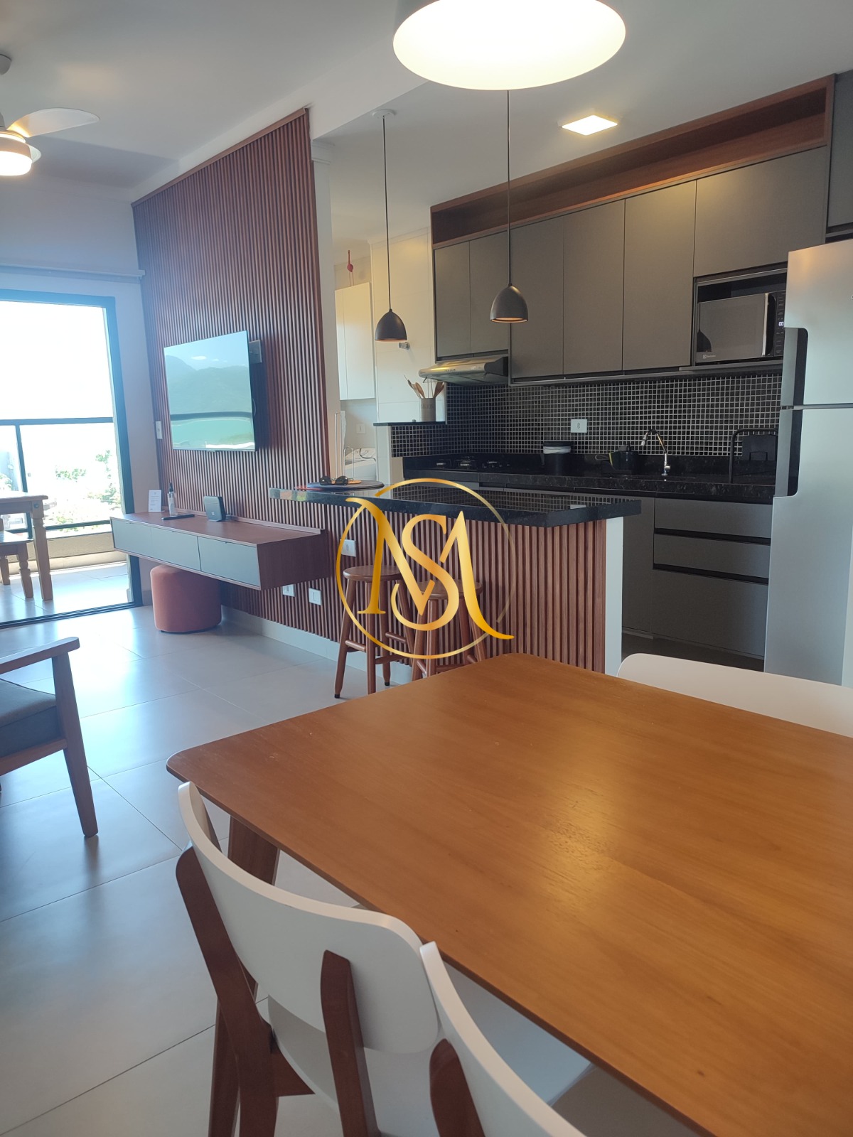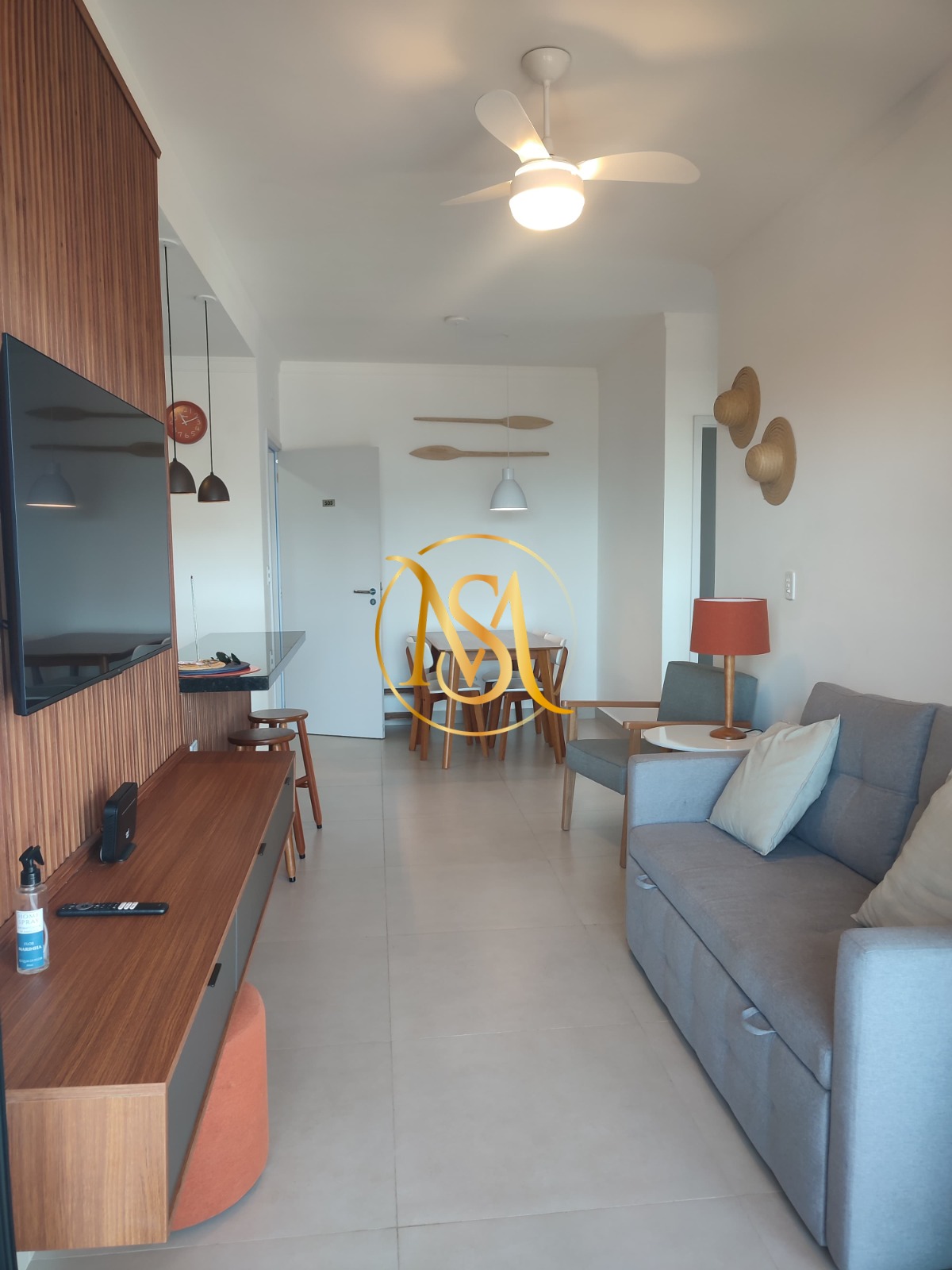 O apartamento ainda conta com ventilador, ar condicionado, lavabo, área de serviço e sacada, garantindo praticidade e conforto no dia a dia.